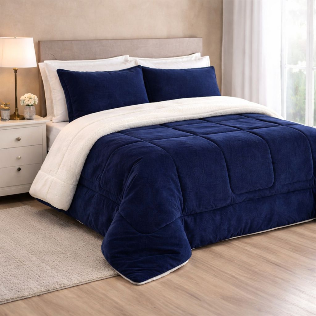 Coberdrom duplo com um lado em Sherpa e o outro em tecido flannel para conforto térmico. Ideal para noites frias, oferece aquecimento e suavidade.