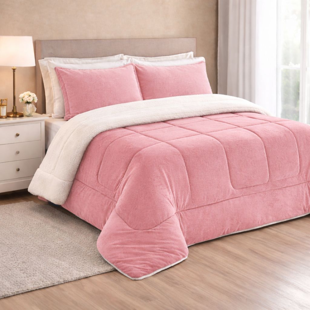 Coberdrom Sherpa e Flannel Queen Rosa
